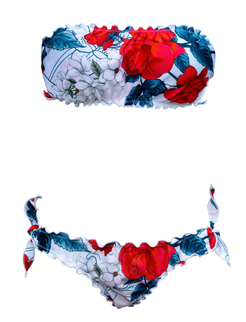 Der Bianca Bikinieau-Schwimmanzug zeigt unseren unverwechselbaren Frou-Frou-Style und eine romantische Blumenkomposition auf glänzend weißem Hintergrund, perfekt für Strand und Abend. Zusätzliche Träger für die Oberteile sorgen für vollen Halt auch bei großer Oberweite, während Bindebänder und herausnehmbare Cups bei den Oberteilen und Kordelzüge bei den Slips für die nötige Vielseitigkeit bei der Größenwahl sorgen.